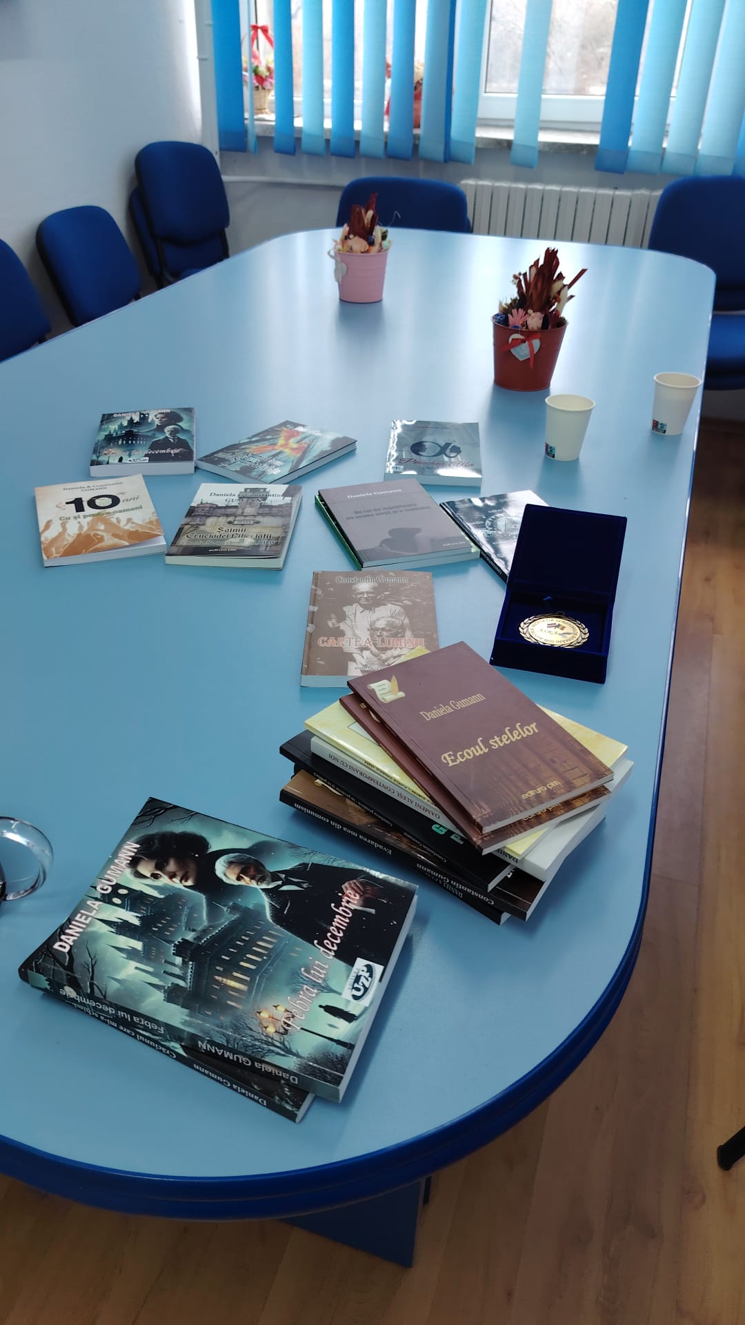 Momentul cel mai emoționant, atât pentru mine cât și — sper — pentru școală, a fost acela în care am donat bibliotecii liceului colecția completă de cărți GUMANN. Un gest făcut din inimă, cu dorința ca poveștile mele să circule printre tineri, să fie atinse, răsfoite, descoperite, poate chiar criticate. Pentru că literatura trăiește doar atunci când ajunge la cititori.